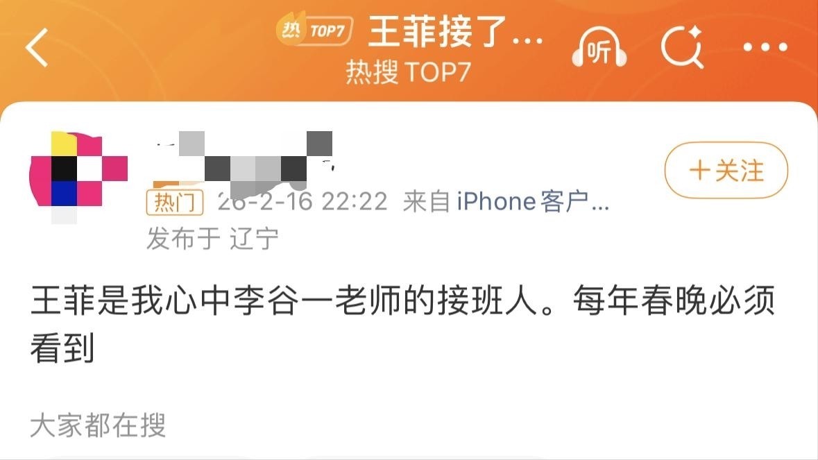 演出结束后,社交平台掀起一股“请王菲接棒李谷一”的呼声浪潮。