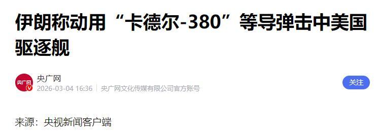 伊朗这次发射的“卡德尔380”导弹,在去年2月才公开亮相,其射程达到了1000公里,这比美军认定的反舰弹道导弹的最大射程还要多300公里。而且,这次美军驱逐舰疑似遇袭时,进行补给行动,确实存在来不及进行导弹拦截的情况。而在26年前,美国的“伯克”级驱逐舰“科尔”号也是在补给过程中,遭到了“炸弹小艇”的袭击。如果是正常情况,美军驱逐舰不太可能被重创,因为伊朗的导弹整体性能就是普通的亚音速反舰巡航导弹,并不比美国的“鱼叉”导弹强,“宙斯盾”系统将其拦截的难度不大。后续,就看遇袭的驱逐舰会不会进入大修或退役流程,若真是如此,那么就是被击中了。