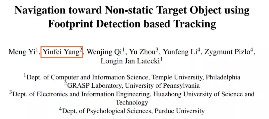 ▲2012年,Longin Jan Latecki教授发表论文《基于足迹检测的跟踪方法,实现对非静态目标物体的导航》,杨寅飞担任二作(图源:天普大学主页)
