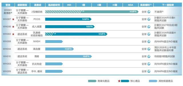 WH006为中药2.3类改良型新药,适用于成人肥胖症或超重,已于2025年8月启动II期临床试验,是截至披露日中国仅有的一款处于临床II期的肥胖症治疗天然药物。