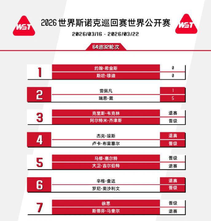 首个比赛日,多位焦点选手都顺利拿下胜利完成晋级。四届世锦赛冠军且本届赛事卫冕者约翰·希金斯,于资格赛中迎战英格兰新星利亚姆·海菲尔德。双方激烈交锋,水平旗鼓相当,八局过后希金斯以5-3险胜。比赛中,希金斯展现出强劲火力,打出了一杆破百和三杆50分以上的高分;对手海菲尔德同样不遑多让,轰出两杆破百和两杆50+。